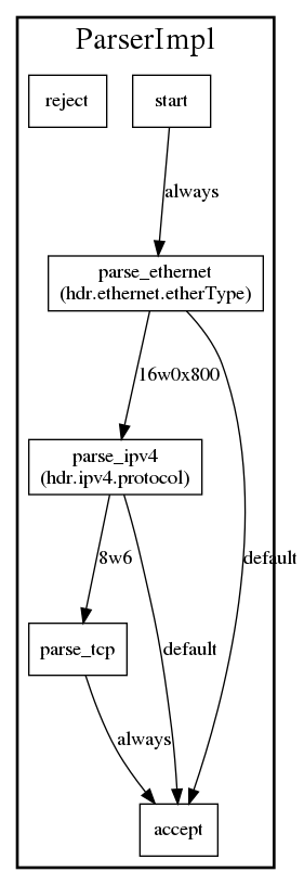 Here is the graph generated for the parser block of the flowlet_switching-bmv2.p4 test program:
